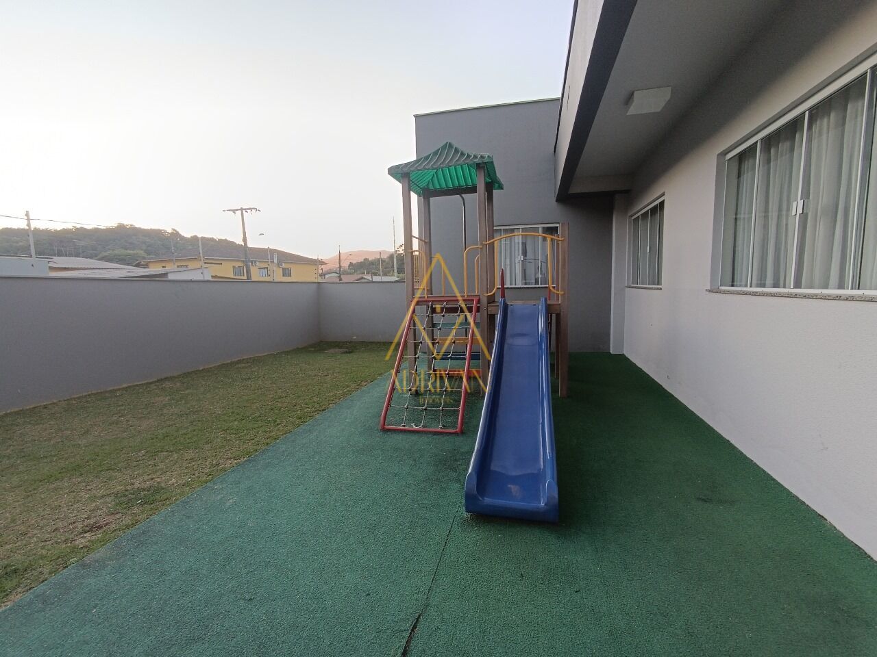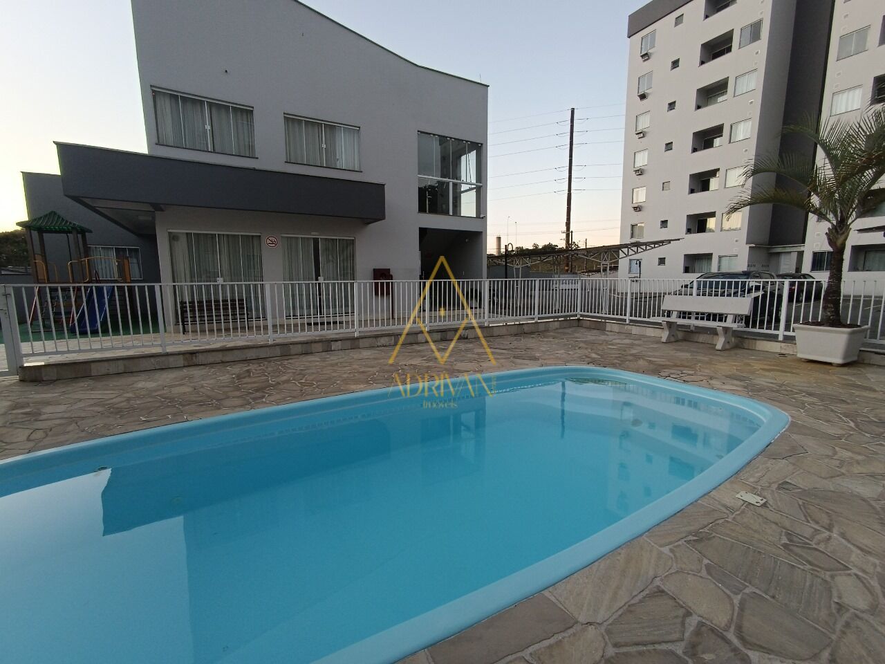 O prédio possui piscina, elevador, playground e salão de festa.