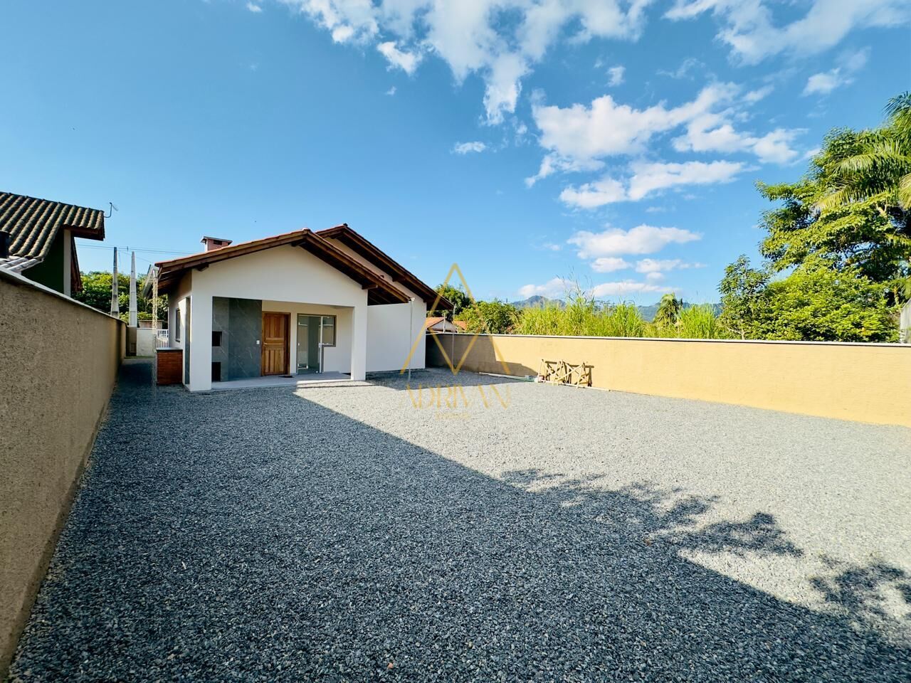 Casa no Rio da Luz em Jaraguá do Sul, medindo 99,35metros², sendo: uma suíte e mais um dormitório, sala, cozinha, banheiro, lavanderia, churrasqueira e garagem coberta.