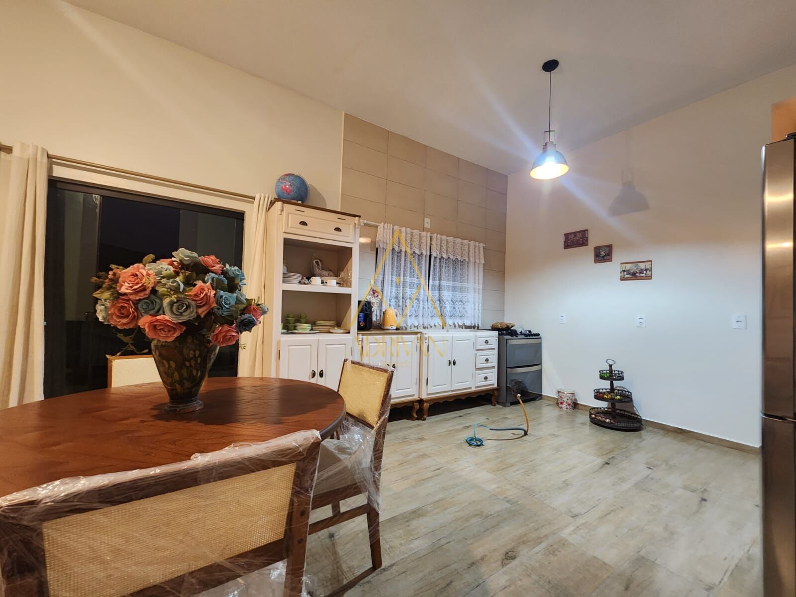 O imóvel possui na cozinha móveis sob medida modelo provençal, geladeira e fogão Brastemp, fica eletros, mesa e cadeiras. Ar condicionado no quarto e cômodas. Ficam tbem todas as cortinas do imóvel.